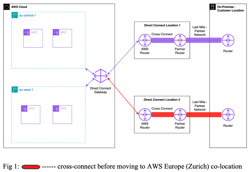 Since the organization already had last mile access to Zurich and a router at the same co-location facility, they chose to utilize the new Zurich Direct Connect location 3 for one of their two connections. This reduced dependency on a single partner, lowered costs by eliminating one last mile partner network, and improved overall network resilience.