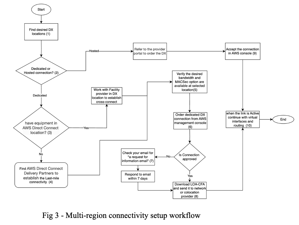 (7) After you order a dedicated Direct Connect connection in the AWS Console, you may receive a ‘Request for Information’ email if additional information is needed. You must respond to this email within 7 days. If you don’t respond within this timeframe, AWS deletes the connection order and you’ll need to submit a new order.