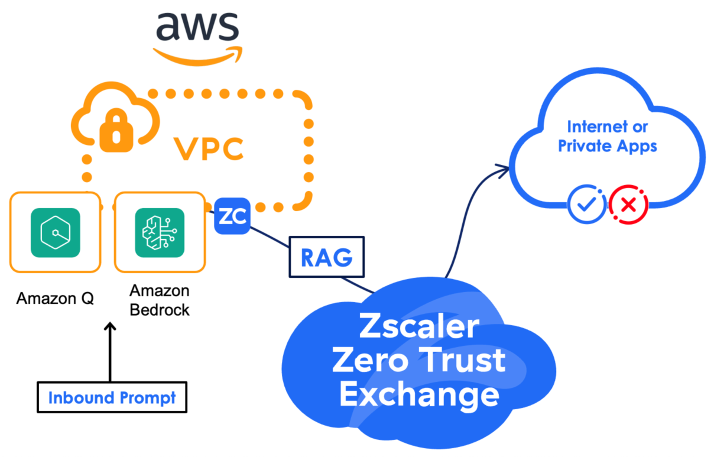 AWS services provide robust security infrastructure with encryption, fine-grained access controls, and compliance standards. Zscaler complements this foundation with zero trust access and inline enforcement capabilities through identity-aware access controls, Data Loss Prevention (DLP), smart input prompt monitoring and blocking with AI Guard, and Zero Trust egress filtering. Together, AWS and Zscaler solutions secure generative AI interactions and maintain compliance throughout the AI lifecycle.