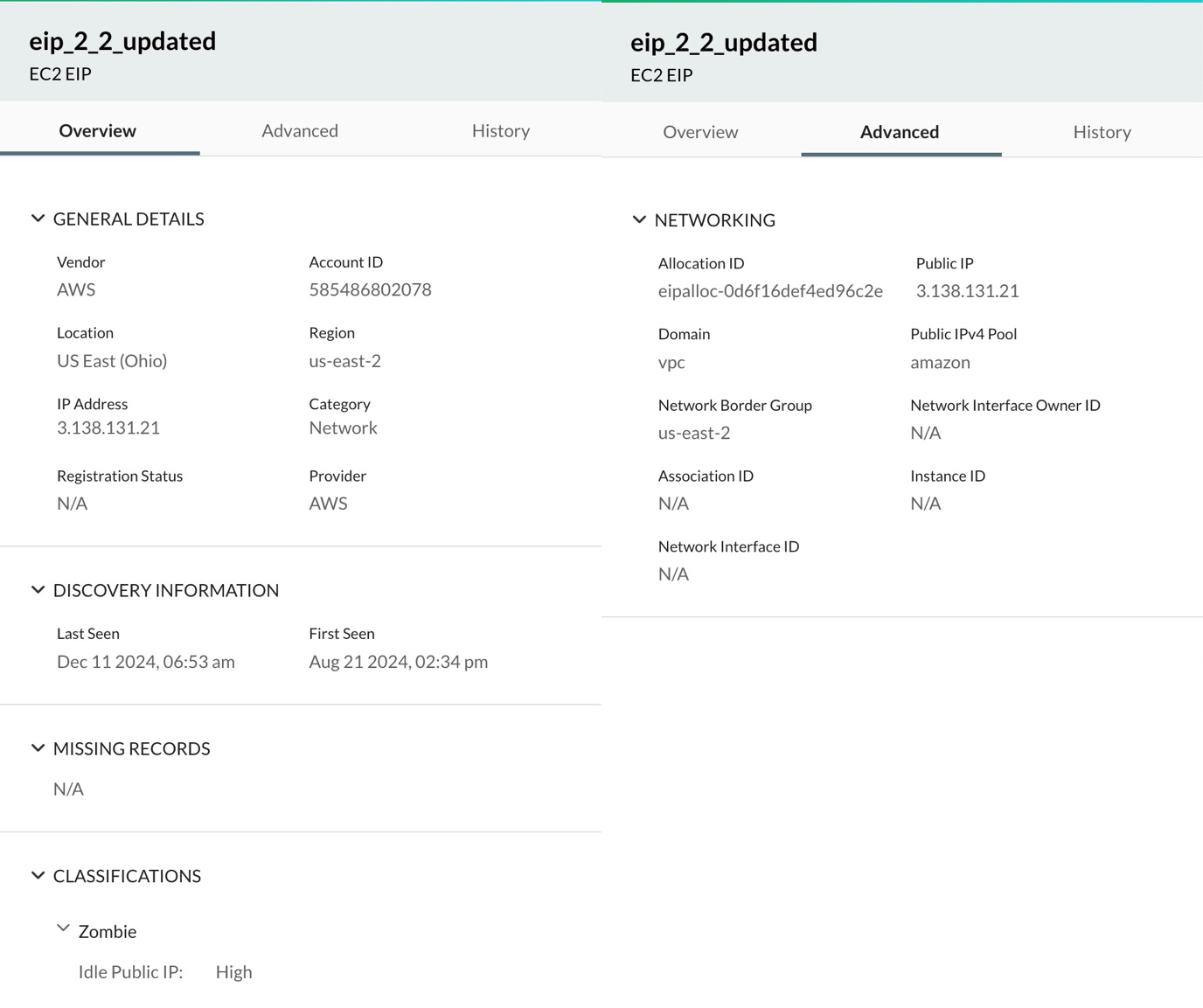 Figure 4. Rich details about Zombie Asset from Overview and Advanced section