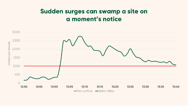 Beyond technical considerations, organizations running limited-inventory events face an additional challenge: fairness. Without traffic control mechanisms, high-demand sales can become races measured in milliseconds, often dominated by automated bots rather than genuine customers, resulting in poor customer experience and damaged brand trust.