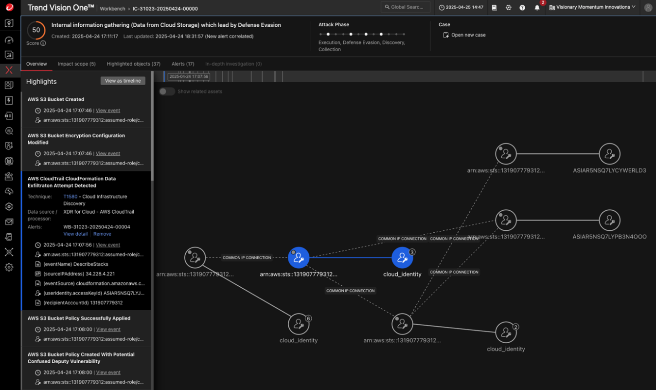 To address a lack of visibility, enable services such as AWS CloudTrail, AWS Config, Amazon GuardDuty, and AWS Security Hub to aggregate logs and detect suspicious activity. Pair these with extended detection and response (XDR) tools such as Trend Vision One™ XDR for Cloud for end-to-end threat correlation and faster response times.