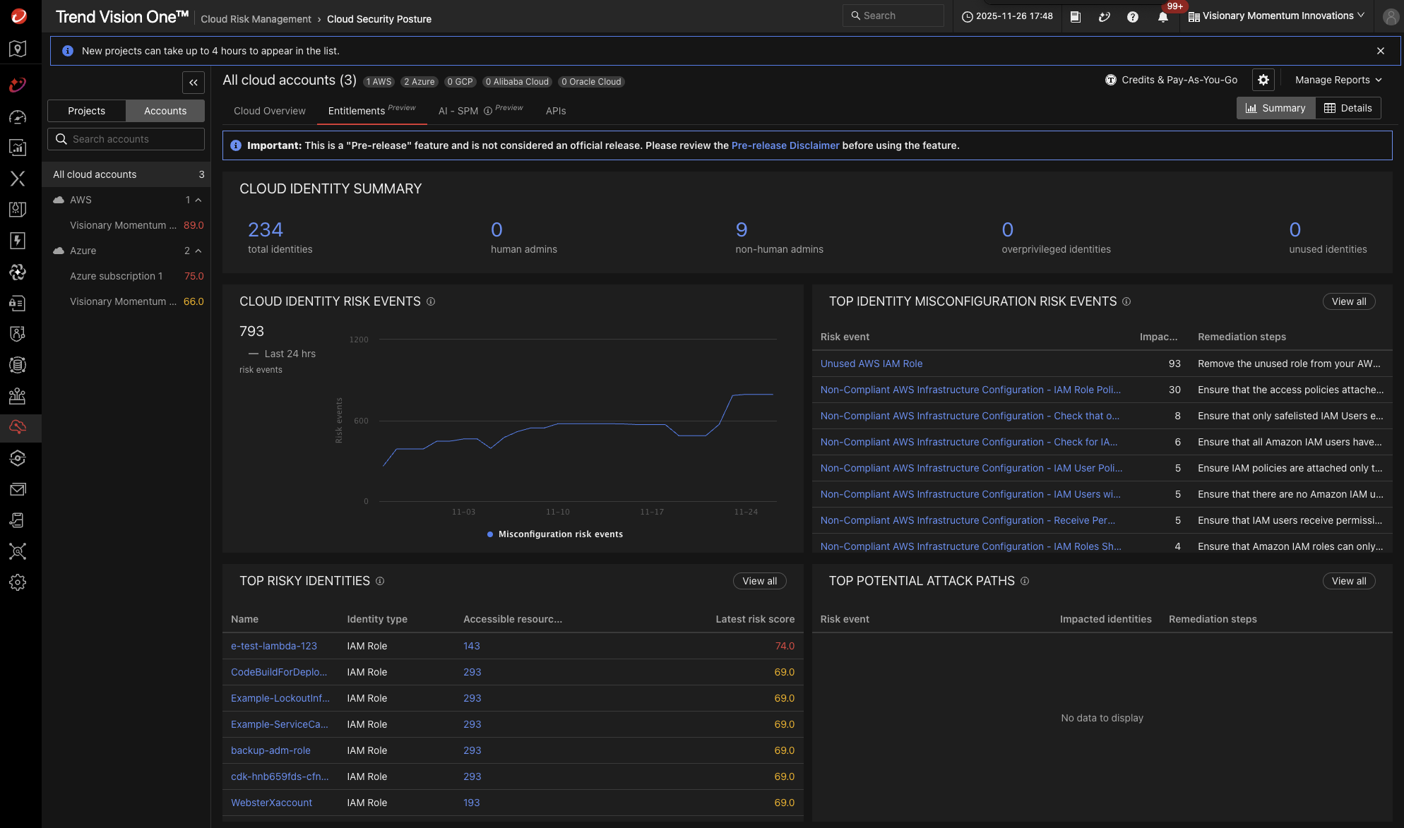 Figure 3: Cloud Entitlements dashboard within Trend Vision OneFigure 3: Cloud Entitlements dashboard within Trend Vision One