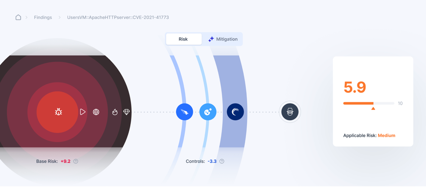 - Rapid risk mitigation – Uses existing security controls (such as CNAPP, EDR, and WAF) to prescribe immediate mitigations across thousands of assets, removing lengthy patch cycles from the critical path.