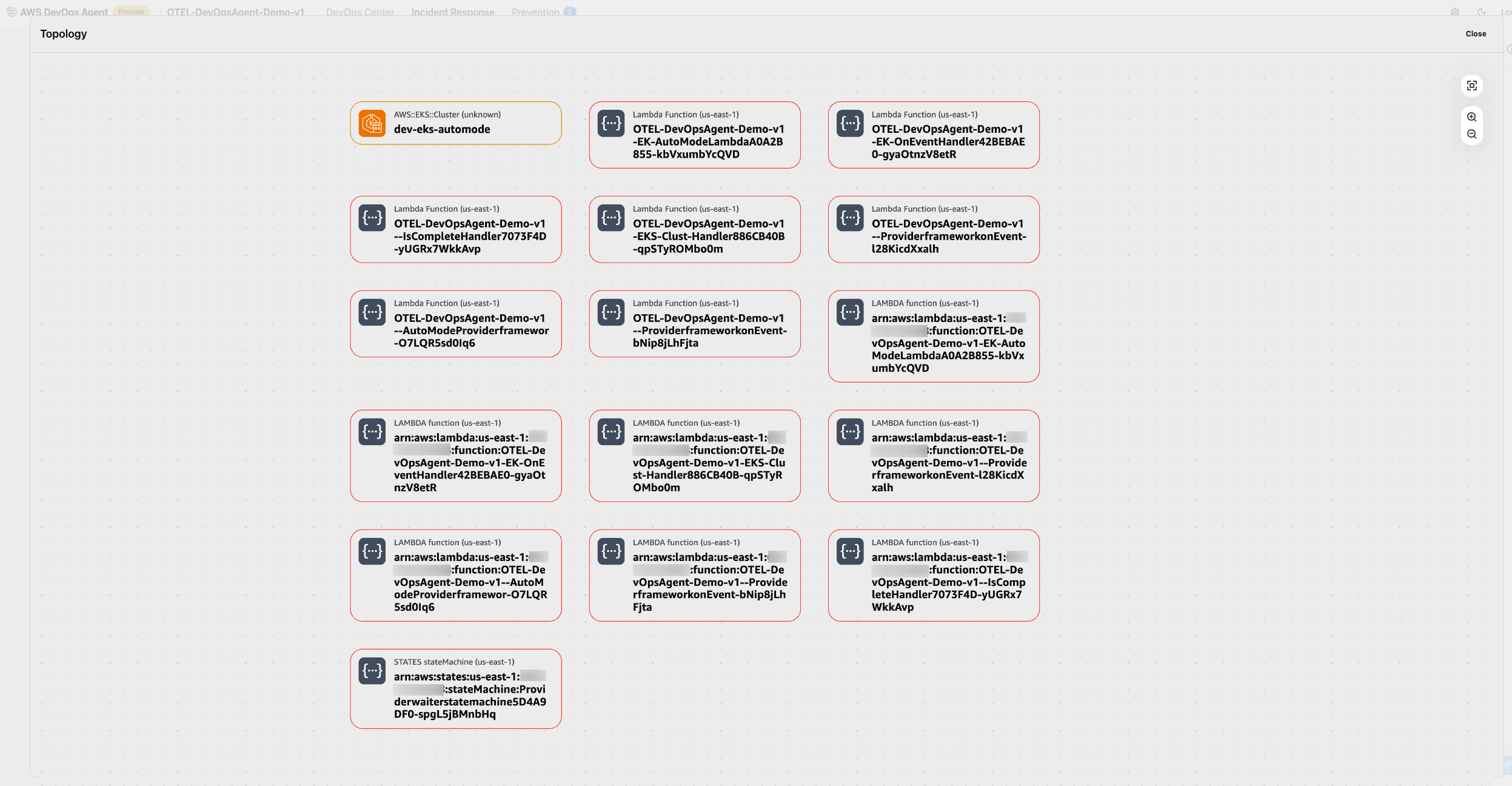 Figure 17: This is screenshot of topology of Amazon EKS cluster discovered by AWS DevOps agent