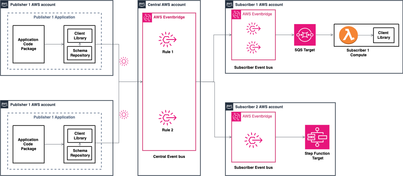 - Enhanced security: The multi-account structure provides natural isolation boundaries while still enabling controlled cross-account event flows.