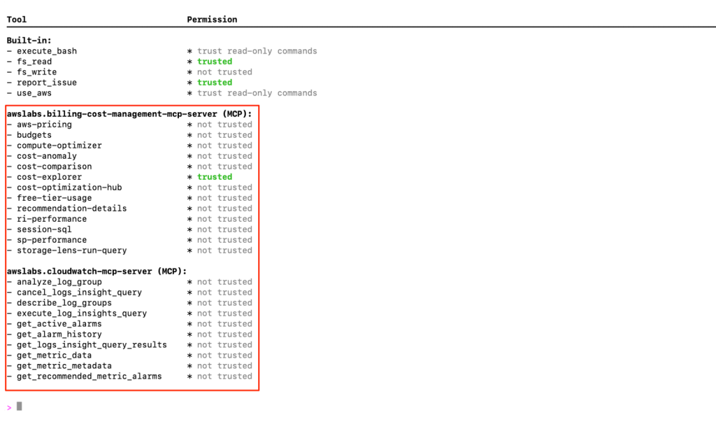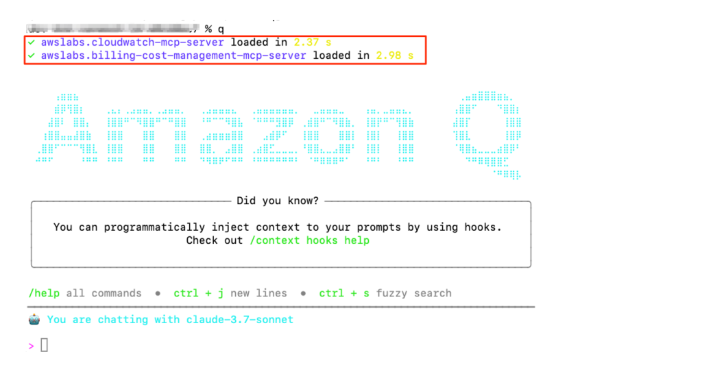 Figure 2. Initiating the Amazon Q CLI with MCP server