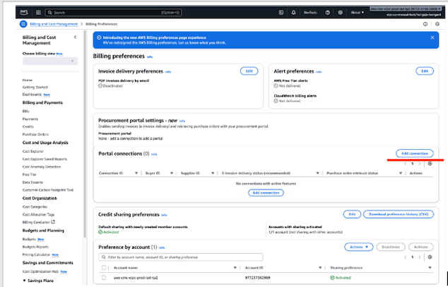 9. Review and Submit request for connecting with your procurement portal and activating AWS E-invoice delivery.