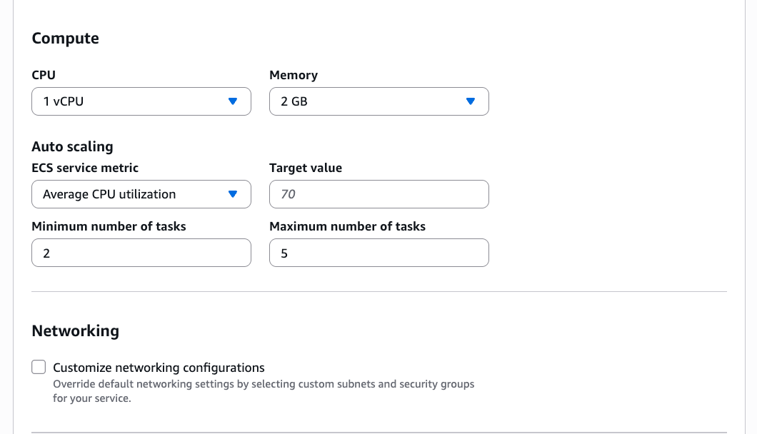 - Application Load Balancer sharing – The ALB created is automatically shared across up to 25 ECS services using host-header based listener rules. This helps distribute the cost of the ALB significantly.