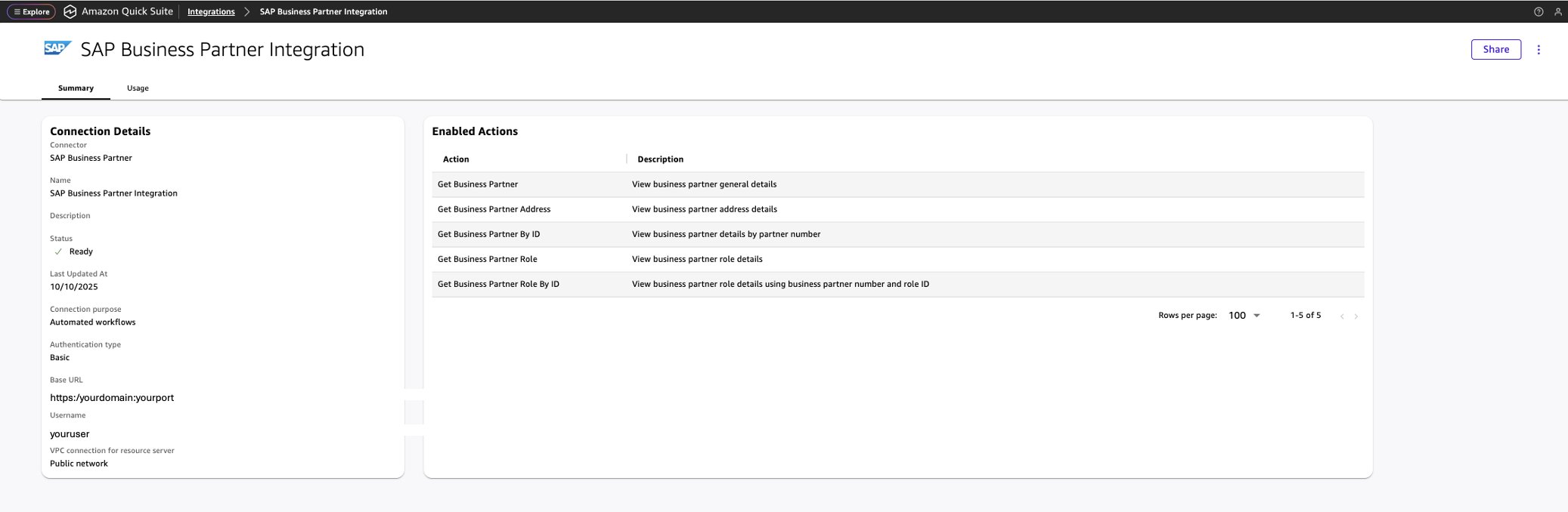 - Setup Connectivity: Set up secure connections to your SAP systems through the Quick Suite console and configure necessary actions to be performed with the Connectors.