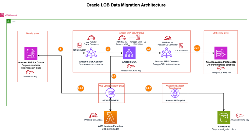 In this post, we present a scalable solution that addresses the challenge of migrating your large binary objects (LOBs) from Oracle to AWS by using a streaming architecture that separates LOB storage from structured data. This approach avoids size constraints, reduces Oracle licensing costs, and preserves data integrity throughout extended migration periods.