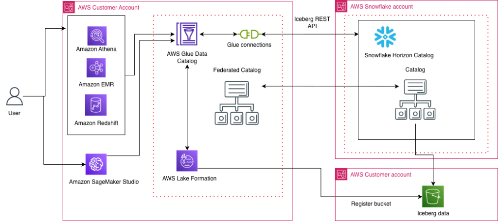 AWS has introduced a new catalog federation feature that enables direct access to Snowflake Horizon Catalog data through AWS Glue Data Catalog. This integration allows organizations to discover and query data in Iceberg format while maintaining security through AWS Lake Formation. This post provides a step-by-step guide to establishing this integration, including configuring Snowflake Horizon Catalog, setting up authentication, creating necessary IAM roles, and implementing AWS Lake Formation permissions. Learn how to enable cross-platform analytics while maintaining robust security and governance across your data environment.