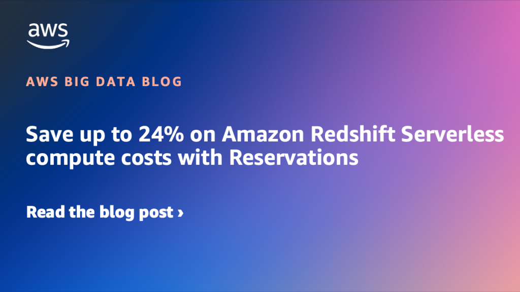 Save up to 24% on Amazon Redshift Serverless compute costs with Reservations