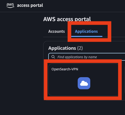 - After authentication, choose the Applications tab in AWS Access Portal and choose the OpenSearch Service application.