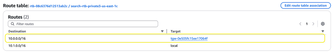 Next, you must update each VPC route table to facilitate connectivity to the OpenSearch Service domain.