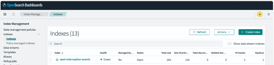 - Index State Management (ISM) : Configure ISM policies in OpenSearch to delete or archive older interruption data. More information Index State Management in Amazon OpenSearch Service