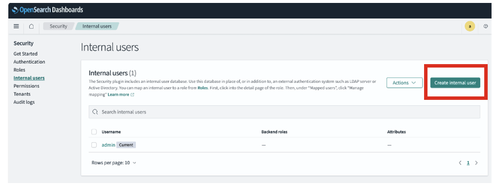 - Select ‘Internal Users’ and then select ‘Create Internal user’