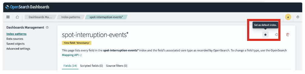- IndexName: {OpenSearch Index name where Spot interrupted instance related data will be pushed}