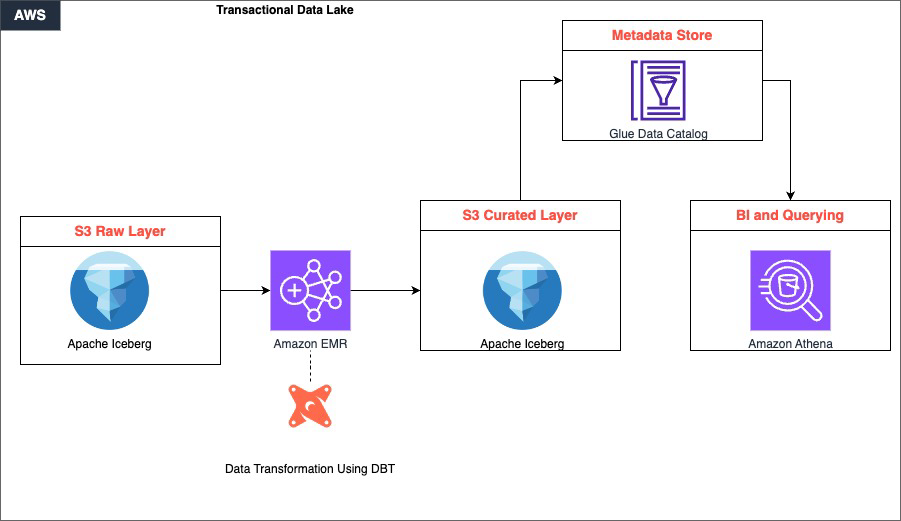When combined, these three technologies provide a powerful solution for building transactional data lakes. Amazon EMR provides the scalable and managed infrastructure for running big data workloads, dbt enables efficient data modeling and transformation, and Apache Iceberg provides data consistency and reliability within the data lake.