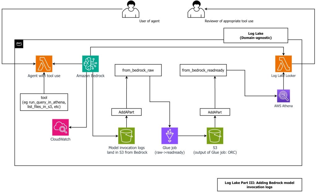 In this post, you learn how to build Log Lake, a customizable cross-company data lake for compliance-related use cases that combines AWS CloudTrail and Amazon CloudWatch logs. You’ll discover how to set up separate tables for writing and reading, implement event-driven partition management using AWS Lambda, and transform raw JSON files into read-optimized Apache ORC format using AWS Glue jobs. Additionally, you’ll see how to extend Log Lake by adding Amazon Bedrock model invocation logs to enable human review of agent actions with elevated permissions, and how to use an AI agent to query your log data without writing SQL.
