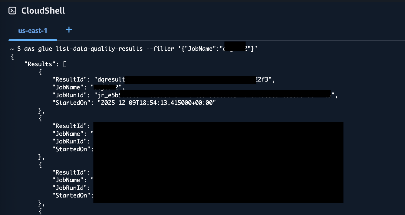 Beyond querying results in Athena, you can also retrieve data quality outcomes directly using the AWS Command Line Interface (AWS CLI). This is useful for automation, scripting, and integrating data quality checks into continuous integration and continuous delivery (CI/CD) pipelines.
