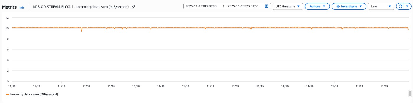 In this post, we show three real-world scenarios comparing different usage patterns and demonstrate how On-demand Advantage mode can optimize your streaming costs while maintaining performance and flexibility. To have a meaningful comparison, we ran simulations in two separate AWS accounts: one with On-demand Standard mode and another with On-demand Advantage mode enabled at the account level. Both deployments maintained identical stream configurations, shard allocations, and ingest patterns, providing a comparison of the billing impact for all of the following scenarios.
