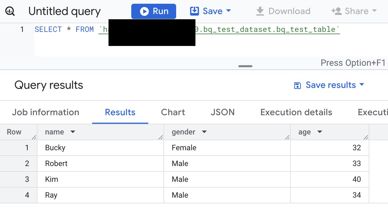 "query": "SELECT * FROM `YOUR_GCP_PROJECT_ID.bq_test_dataset.bq_test_table`",