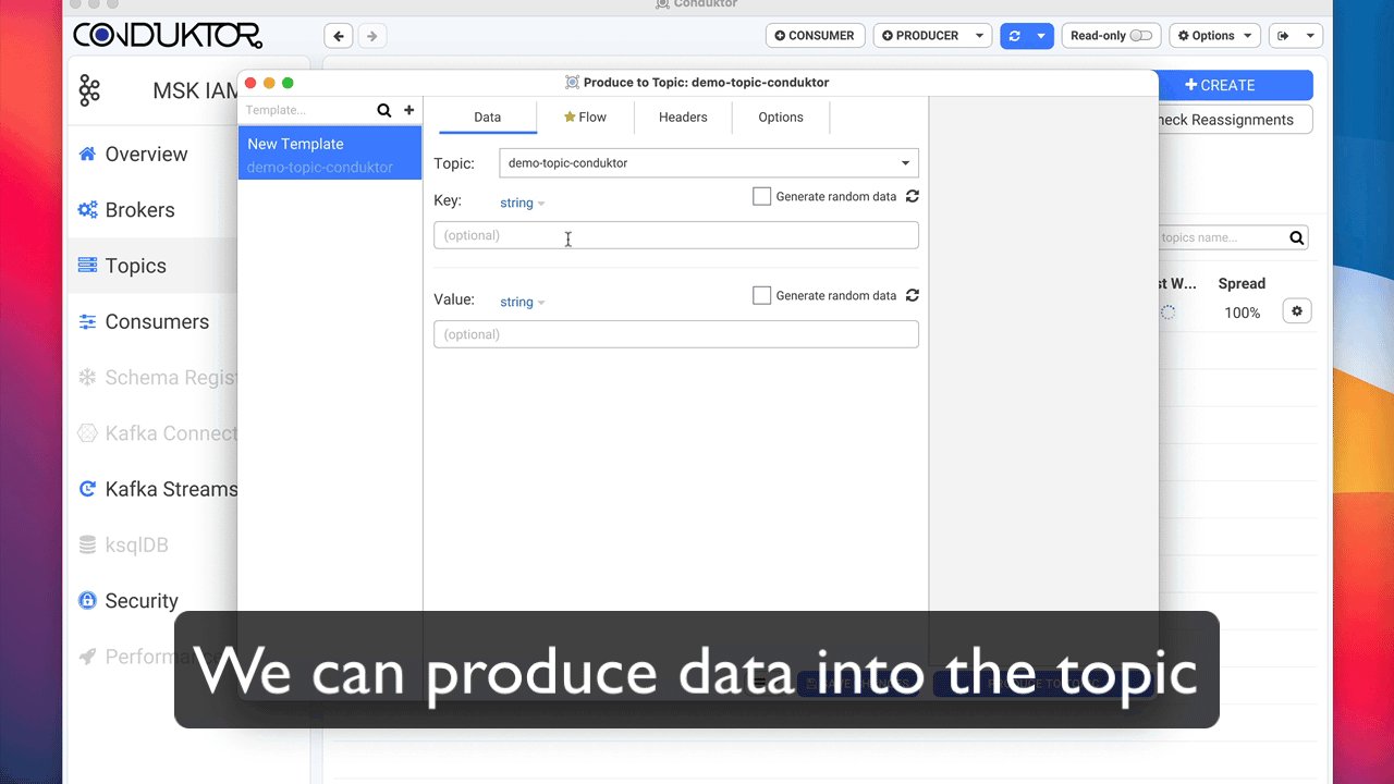 In this post, we explore how this new feature works in detail (setting up and creating a topic, producer, and consumer), and how to connect Conduktor, a graphical Apache Kafka desktop client, which allows us to quickly test our connectivity to Amazon MSK and ensure our first IAM administrator policy gets applied correctly.