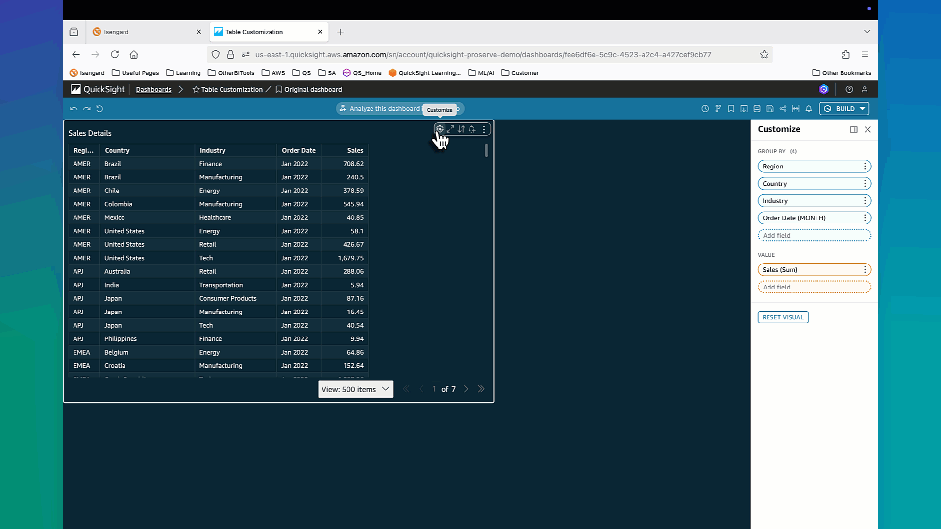 We are excited to announce the general availability of expanding dashboard customizations of tables and pivot tables in Amazon Quick Sight, the AI-powered business intelligence (BI) service. With this enhancement, readers can add or remove fields, change aggregations, and modify formatting directly in dashboards without requiring updates from authors. This enhancement boosts self-service analytics, reducing reliance on authors, and helps readers tailor insights to their role.