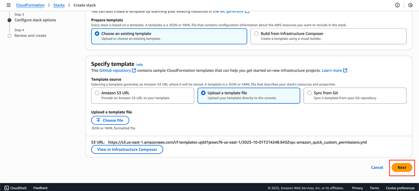 This section provides a CloudFormation template to deploy for existing Quick Suite account subscriptions.