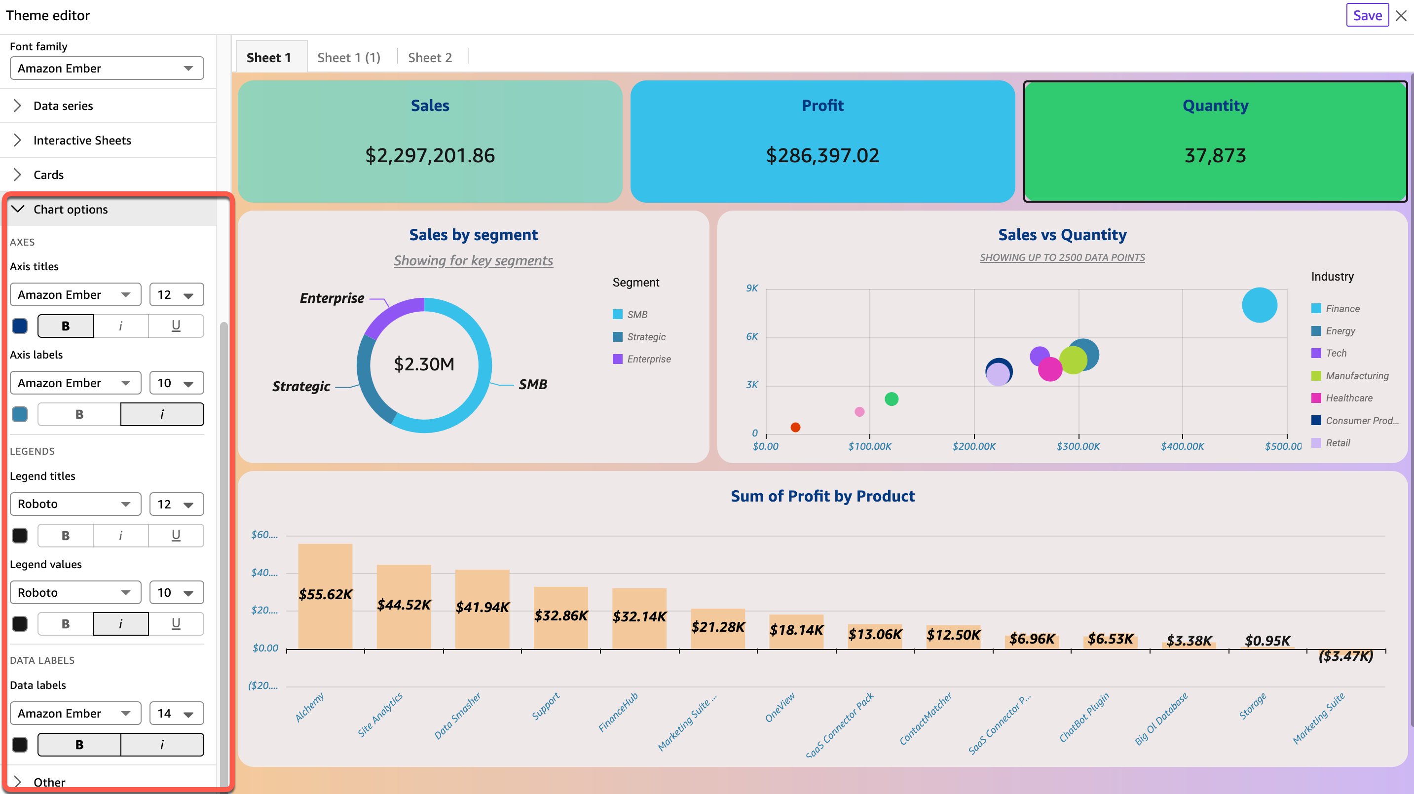 When embedding Quick Sight dashboards into applications, the new theming options help match the host application’s visual style, delivering seamless visual integration, and a consistent, professional user experience.