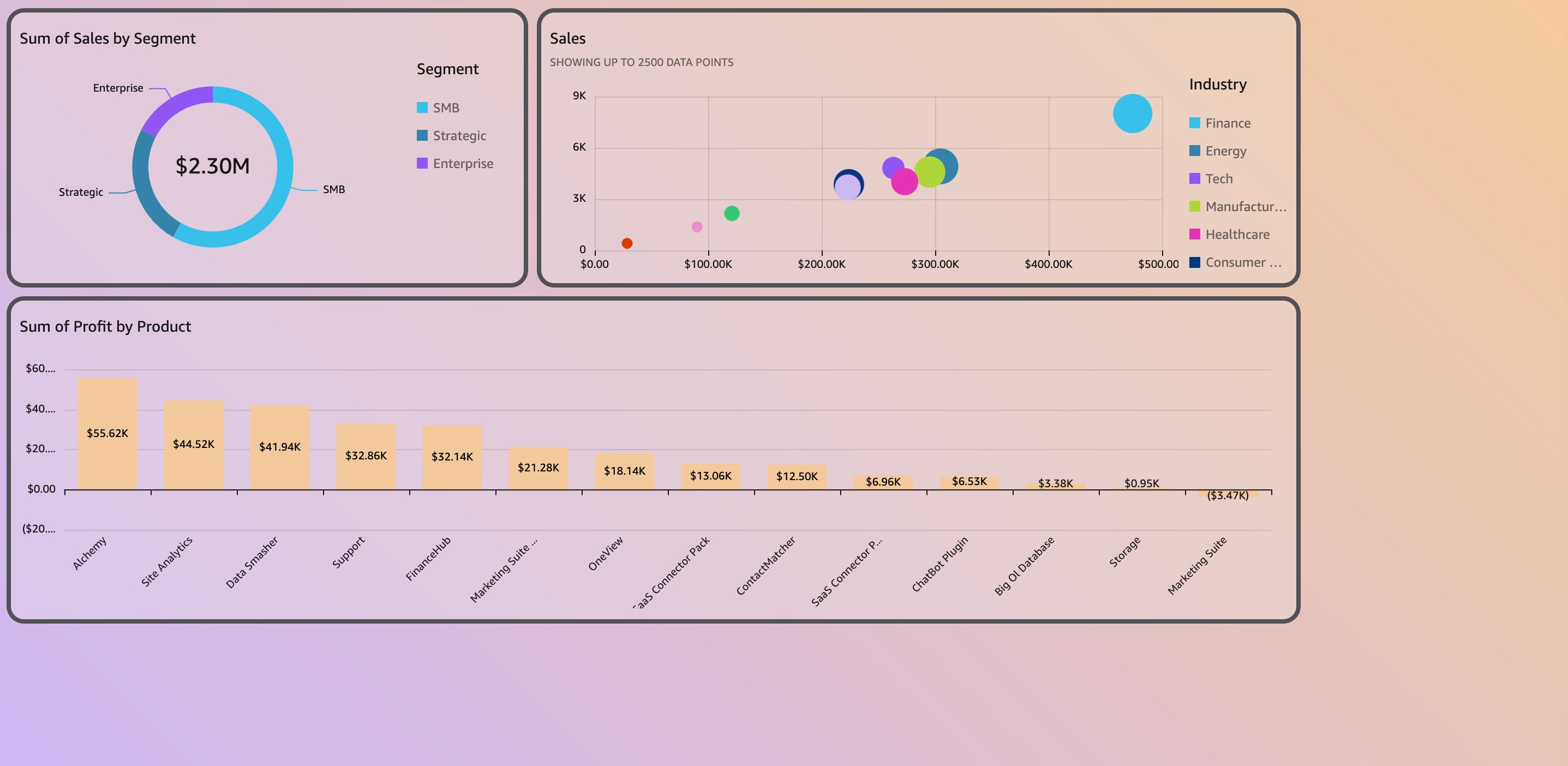Amazon Quick Sight now offers options to customize visual cards via Cards → Card Style within the theme editor. From here, users can adjust the background color, border color, opacity, thickness, and corner radius. Additional options include making cards transparent by disabling the background and disabling borders entirely; examples of both are shown in the following images.