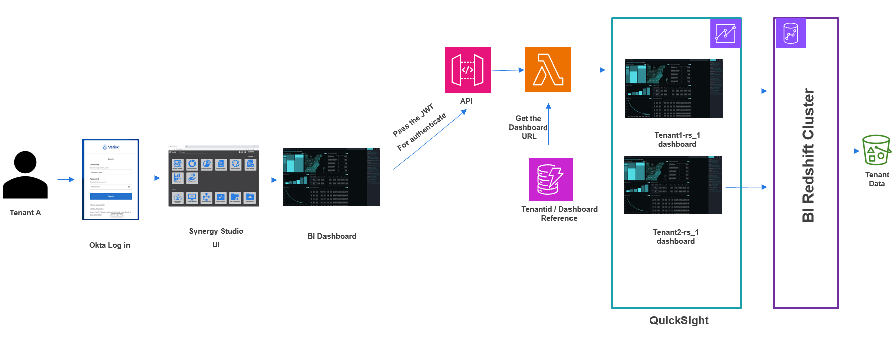 - Tenant-specific dashboard mapping and access control