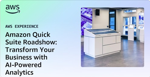 Join AWS for an immersive day exploring Amazon Quick, the enterprise AI platform that’s transforming how business professionals across HR, Legal, Finance, Marketing, and Operations unlock value from their data. This roadshow combines strategic insights, live demonstrations, and hands-on experience to show you exactly how Quick can accelerate decision-making and productivity in your organization.