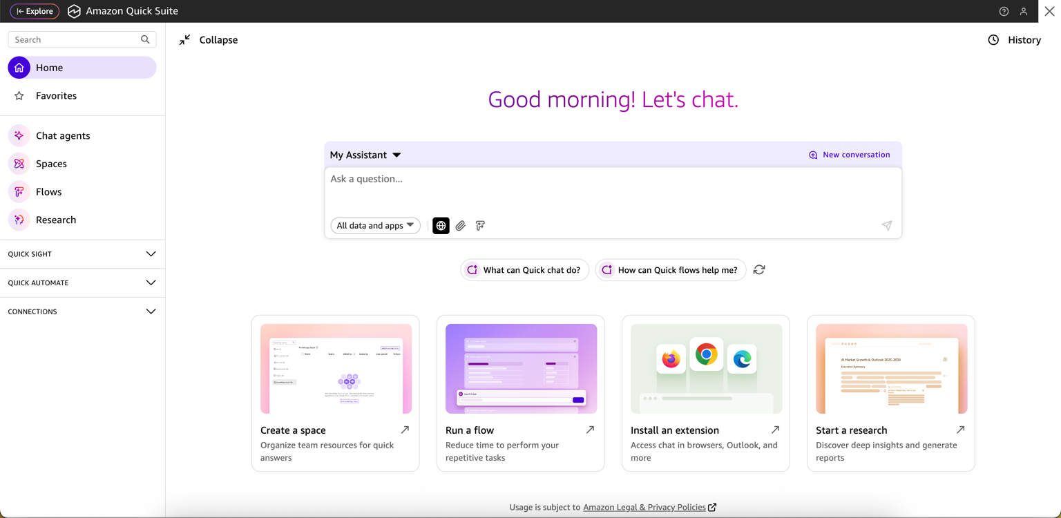 The Quick Suite interface has been thoughtfully redesigned to maintain familiarity while introducing powerful new capabilities. In this section, we discuss some key changes for Pro users and Authors.