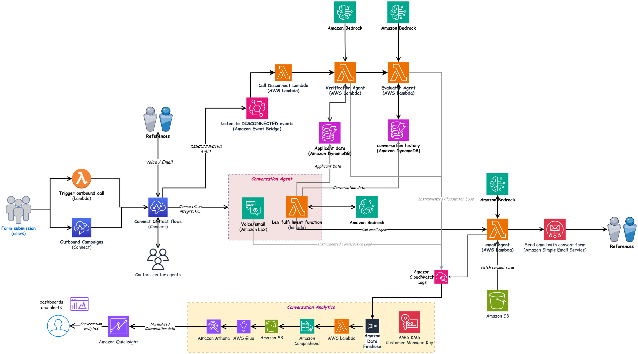 This post shows how AI-powered virtual agents using Amazon Connect, Amazon Bedrock, and supporting AWS services can transform business verification processes through natural voice and text conversations, reducing operational costs by 50% and processing time from days to hours while maintaining human-quality interactions at machine scale.