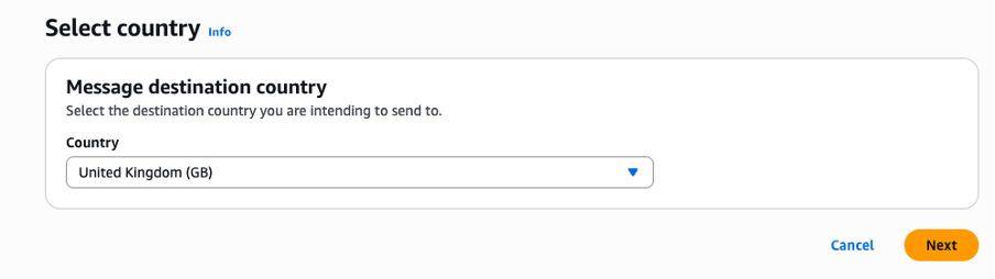 4. Within the ‘Message destination country’ dropdown, select United Kingdom (GB)
