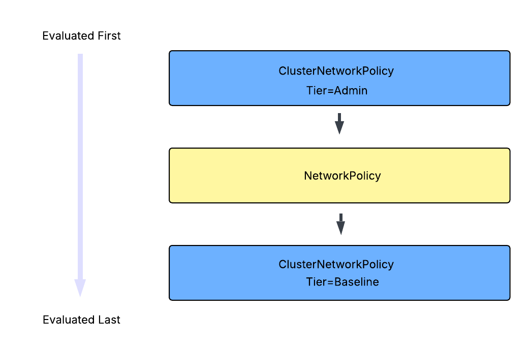 NetworkPolicysaying: “Allow internet access” (Gets blocked by Admin rule). - Baseline tier says: “Allow internal communication” (Can be overridden by Network Policies).