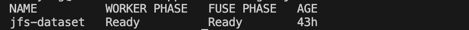 Use the following command to check the status of jfs-dataset:kubectl get datasets