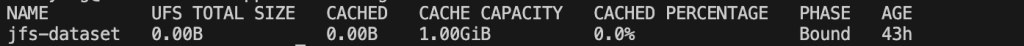 Use the following command to check the status of jfs-dataset:kubectl get datasets