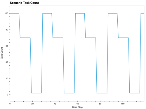 Figure 12: Long Running test with predictable scaling of tasks