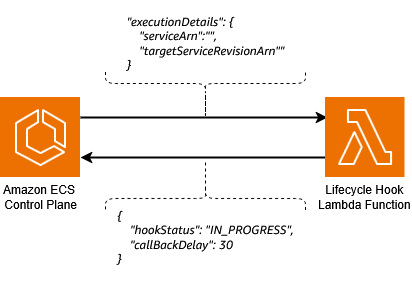 hook status is returned, the Amazon ECS control plane will invoke the function again in 30 seconds (or the time returned in the callBackDelay