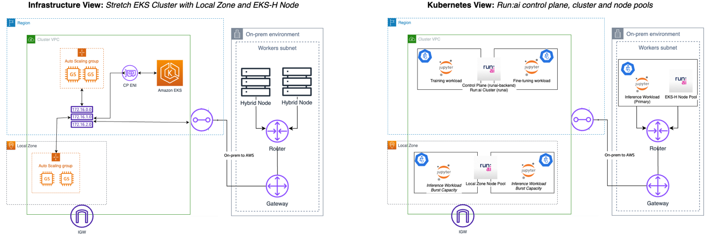 Figure 4: Sample architecture diagram for Run:ai on Amazon EKS hybrid node