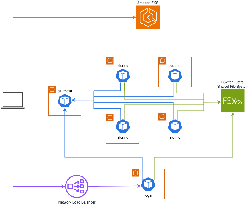Think of Kubernetes as a large, modern office building providing shared resources (for example, electricity, internet, security, HVAC) for its tenants. When a specialized lab moves in, needing dedicated resources such as specific power and temperature control, you don’t build a new building. Instead, you integrate the lab into the existing building infrastructure, allowing it to use shared services while maintaining its own precise controls for high-performance work. In the same way, Slurm can be ran inside a Kubernetes environment such as Amazon Elastic Kubernetes Service (Amazon EKS) using the open source Slinky Project.