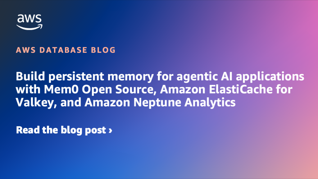 Today, we’re announcing a new integration between Mem0 Open Source, Amazon ElastiCache for Valkey, and Amazon Neptune Analytics to provide persistent memory capabilities to agentic AI applications. This integration solves a critical challenge when building agentic AI applications: without persistent memory, agents forget everything between conversations, making it impossible to deliver personalized experiences or complete multi-step tasks effectively. In this post, we show how you can use this new Mem0 integration.