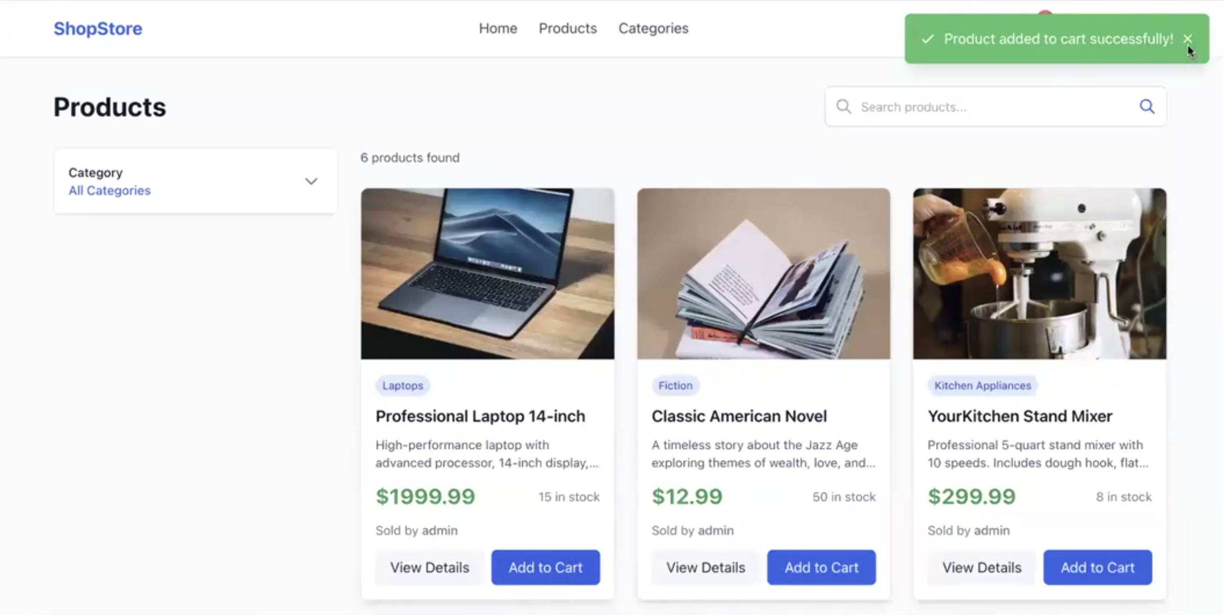 As shown in the following screenshot, the sample ecommerce application provides a realistic environment for practicing modernization techniques, complete with product catalog, shopping cart functionality and complex data relationships.