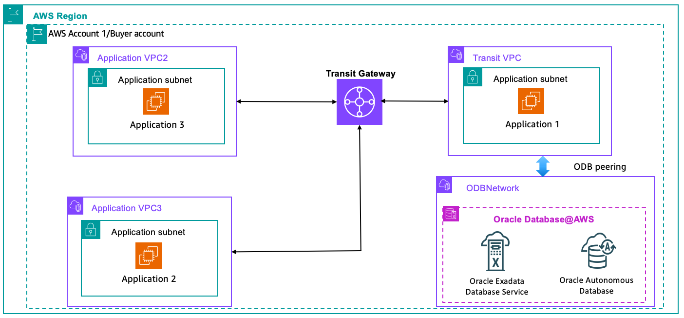 Figure 2: Connectivity from multiple VPCs to ODB@AWS through Transit Gateway in the same account