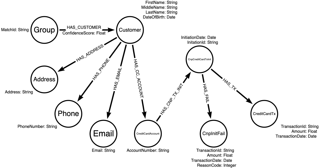 Financial institutions such as banks, payment processors, and online merchants face significant challenges in detecting and preventing fraud and financial crimes. Entity resolution and graph algorithms can be combined to support fraud detection use cases such as Card Not Present (CNP) fraud detection. A CNP transaction occurs when a credit or debit card payment is processed without the physical card being presented to the merchant, typically during online, telephone, or mail-order purchases. These transactions carry higher fraud risks because merchants can’t physically verify the card or the cardholder’s identity, making them particularly vulnerable to fraudulent usage.