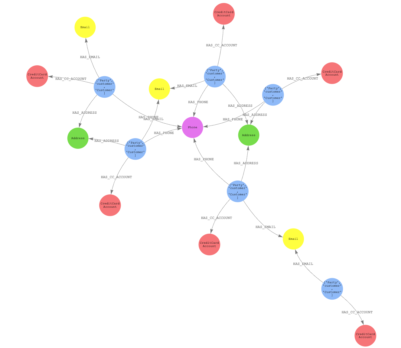 A relationship from the Customer nodes to the customer’s known email addresses |