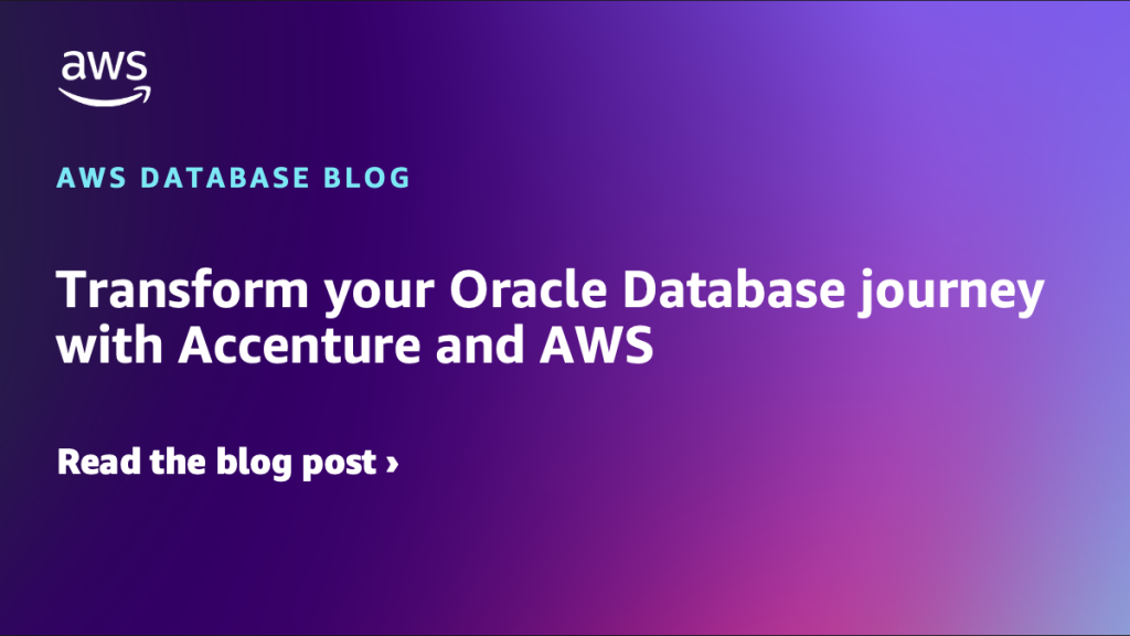In this post, we explore how enterprises can transform their Oracle Database environments by combining Accenture’s proven migration expertise with Oracle Database@AWS’s innovative capabilities to achieve faster modernization, enhanced performance, and seamless integration with AWS services